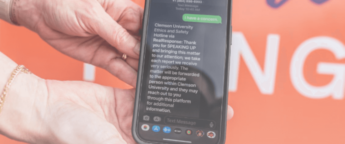 "Encouraging and implementing safe environments for everyone at Clemson is an utmost priority for us, and this platform helps Clemson support those endeavors,"said Tracy Arwood, chief ethics and compliance officer and associate vice president at Clemson University."The addition of RealResponse to Clemson's existing reporting channels provides yet another option to encourage the reporting of misconduct by ensuring that people have a variety of pathways to make a report."